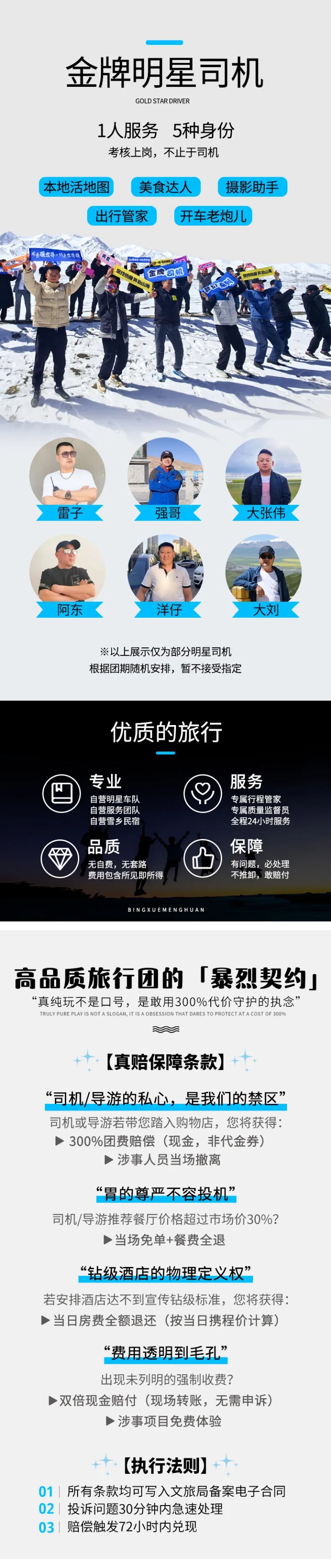 5、领队:司机兼管家,帮助大家购买门票,给团友游玩建议,无法全程陪同进入景区和提供专业讲解等服务,敬请谅解;