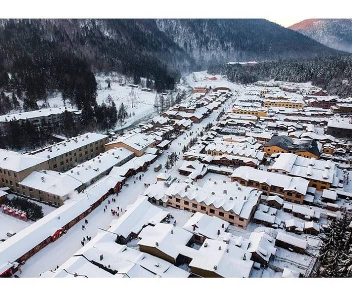 17:00 随后雪乡内自由玩耍,可以走走雪韵大街,欣赏雪房子,寻找雪蘑菇,还可穿上乡村特色的花棉袄COSPLAY。东北冬季日落时间非常早,大约四点多的时候天就已经黑了,可以漫步棒槌山栈道,俯瞰【雪乡夜景】红红的灯笼映在洁白的雪地上。也可参加雪乡景区举办的雪地蹦迪晚会(如遇景区原因或大风等天气原因不举办不退费用)。