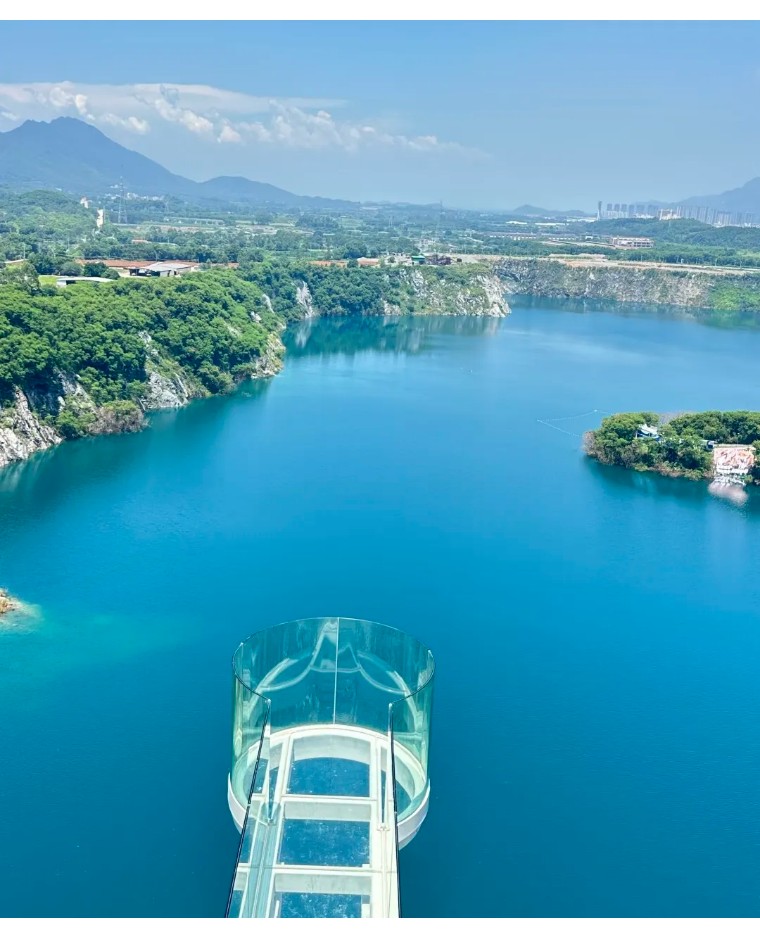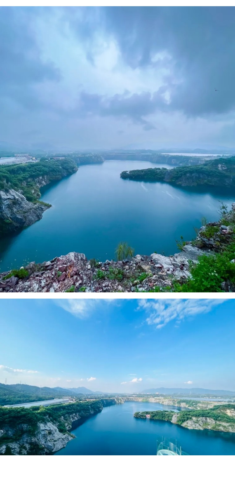广东居然还有个这么小众又好看的地方!被青山绿水环绕~湖水蓝得像宝石,旧矿山改造的咖啡馆也太有感觉了,工业风+自然景完美碰撞!阳光洒在湖面上,湖水蓝得像巨大的蓝宝石,波光粼粼。