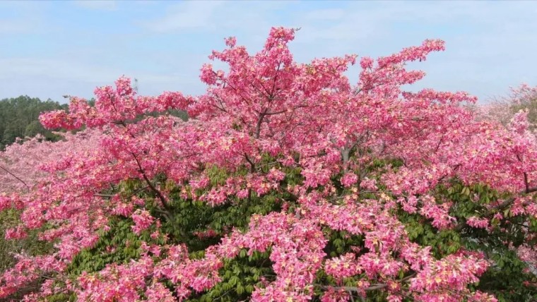 成片的大腹木棉花海尽收眼底