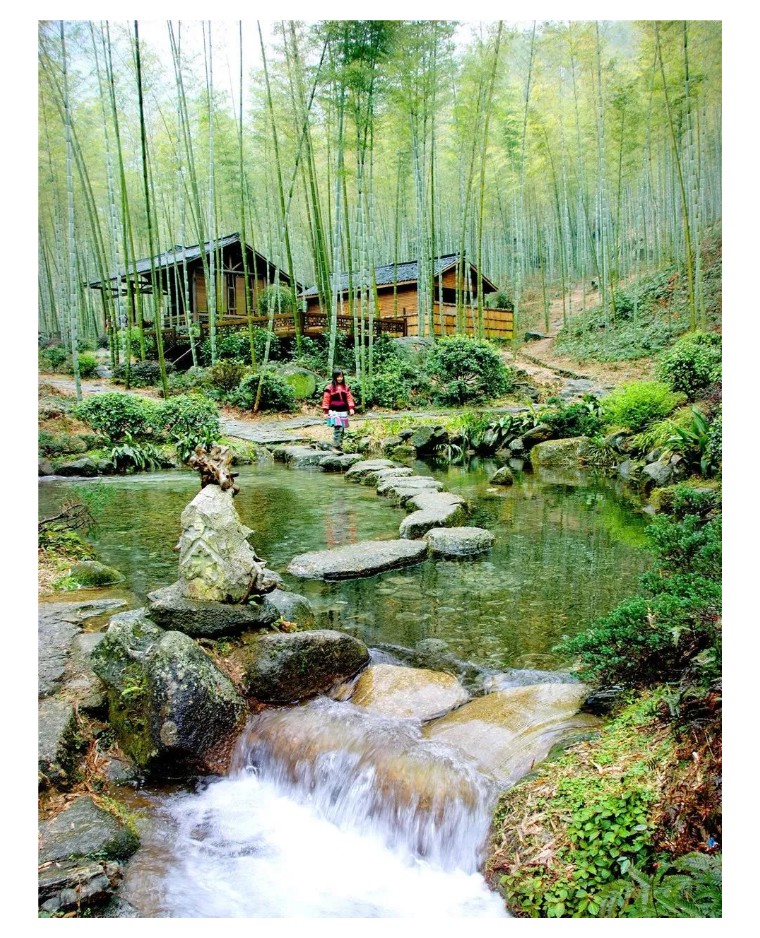 穿越茂密的竹海,顺着溪流的方向前行,耳边传来竹叶的沙沙声,眼前展现的是透明澄澈的源泉深潭。