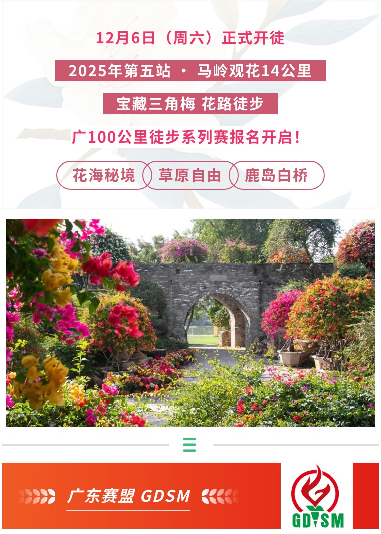 是时候暂别城市的喧嚣,与我们奔赴一场规模盛大的秋日花事!我们精心策划了本次「花都马岭观花徒步」活动,用脚步丈量花径,共赏岭南最绚烂的三角梅盛景。