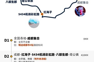 第2天:成都-红海子-S434机场彩虹路-八郎生都-塔公镇(收取旅游费用总额60%的损失费)