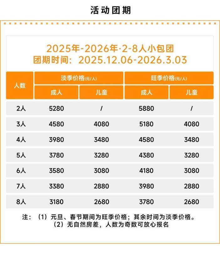 注:8人内司机兼向导(含8人),8人以上安排1名资深领队,15人(含15人)及以上安排摄影师跟团旅拍