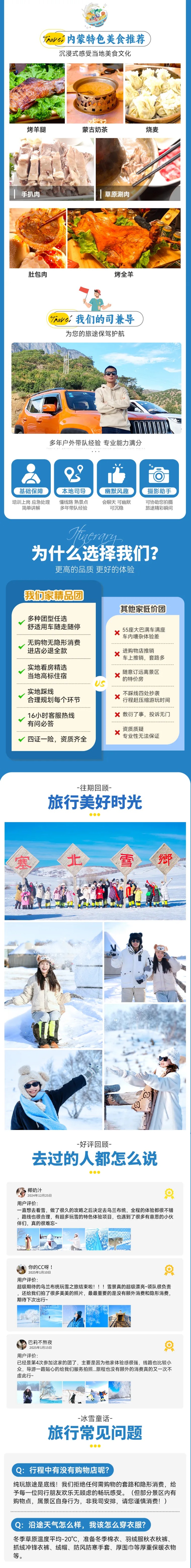 3、门票:乌兰布统、塞罕坝冬季不收费,如需收费请自理
