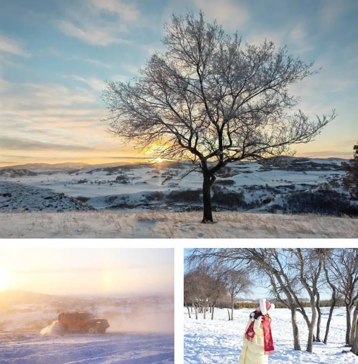 很快,我们进入【乌兰布统】,一场冬日草原震撼又浪漫的雪原画卷在眼前展开。我们先到酒店放行李,自由午餐。