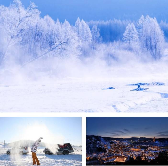 下午前往【塞北雪乡】【白家窝铺】玩雪撒欢。在这里,我们还可以体验泼水成冰,热水的水蒸汽四散开来完全暴露在空气中,在乌兰布统极度低温的状态下,就会形成类似雾状的形态,也可以堆雪人、打雪仗、高山滑雪......多种游玩项目带你找回童年的简单快乐!
