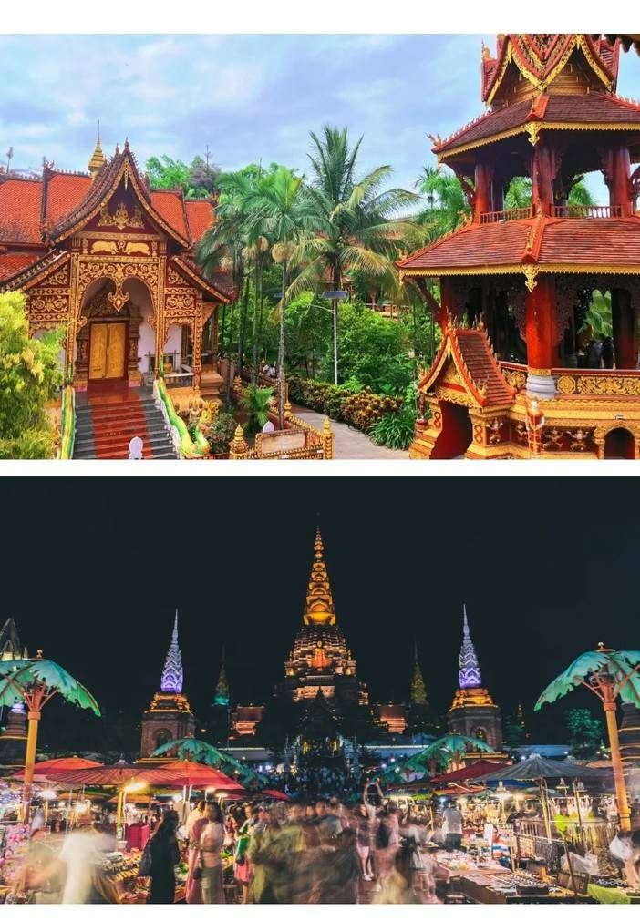 18:00 前往【告庄夜市】,六国烟火在此交汇:傣家香茅草烤鱼焦香碰撞老挝啤酒花的微苦,缅甸翡翠摊旁飘来泰式冬阴功的酸辣。大金塔俯视着人潮涌动,纸灯笼照亮少女腕间孔雀银铃。当鼓点与傣泐语情歌淹没街道,整个澜沧江流域的活色生香在此沸腾。