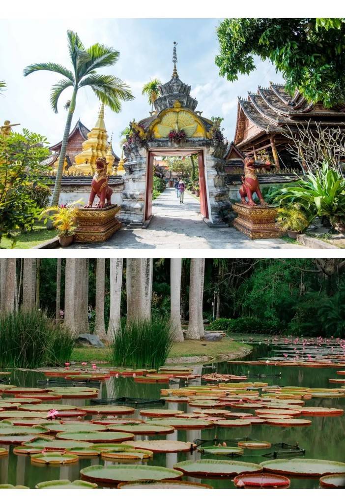 11:00 回到【曼听御花园】,闯入傣王曾经的夏日行宫,菩提树根缠绕着赭红宫墙。孔雀在周总理纪念碑前开屏,金色尖顶与莲花池倒影重叠。仿藤编的咖啡座散落园中,冰滴咖啡的醇苦里,竟尝出十四世纪王室爱情的余韵。