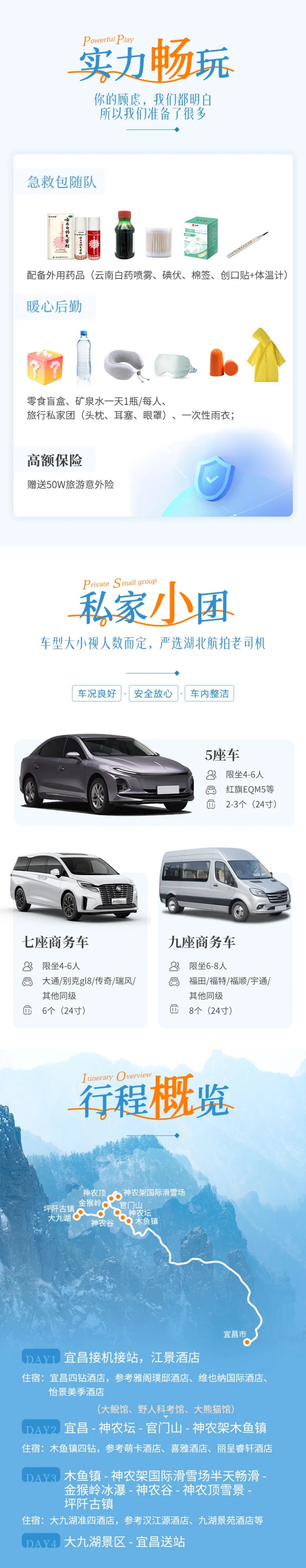 3.如神农架大九湖因天气原因无法前往,则调整为第三日木鱼镇住宿且第四天行程改为天生桥和天燕景区;