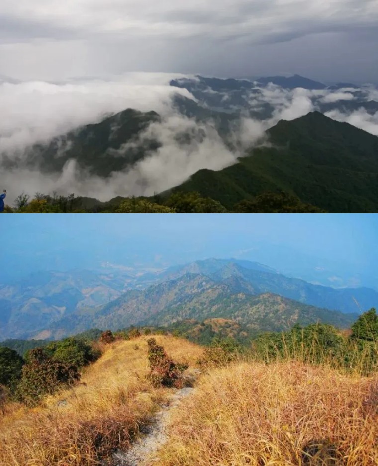 穿过桂峰村的“桂峰香雪”有小路蜿蜒直达山顶,山体程一字形展开,至今依然保留天然植被。
