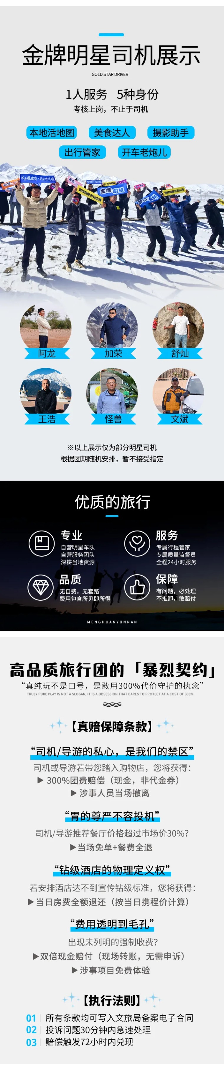 5、司导:司机兼管家,帮助大家购买门票,给团友游玩建议,无法全程陪同进入收费景区和提供专业讲解等服务,敬请谅解;