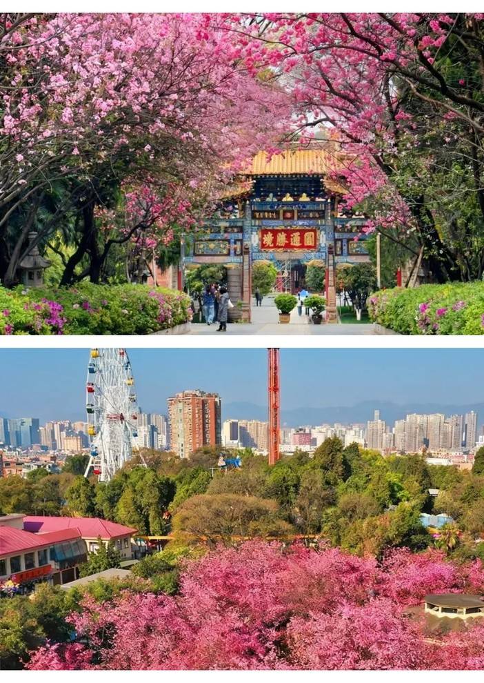 09:00 抵达【圆通山樱花】,每年初春,一场盛大的“粉色风暴”便会如期席卷圆通山。 数千株云南樱花与垂丝海棠沿山势竞相怒放,将整片山野渲染成一片如梦似幻的绯云。花潮之下,游人如织,踏青赏春的欢愉与漫天飞舞的花瓣共同酿造出昆明城中最具生命力的春日盛宴,短暂而绚烂。