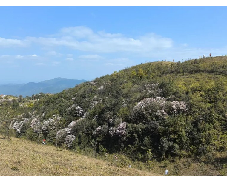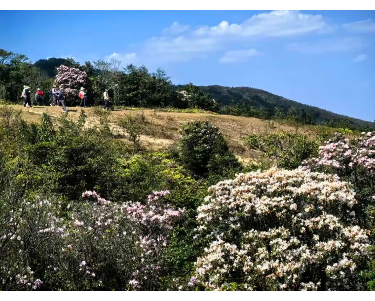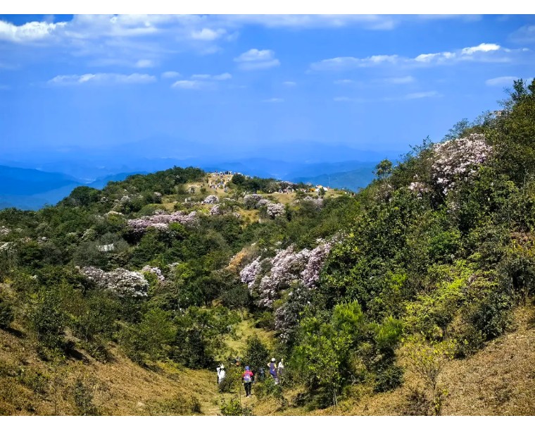 每逢春天,山上开满杜鹃花,一团团、一簇簇开满整个山头,还有禾雀花、吊钟花、名贵树种红雹荷等,数不胜数,远近闻名。
