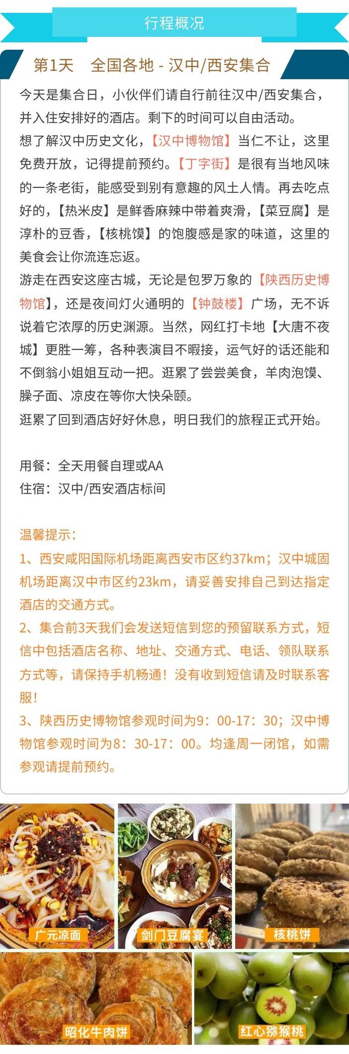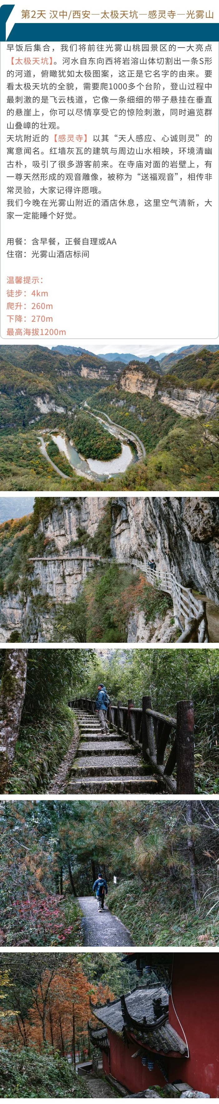 4. 秦巴山区受自然条件限制,旅游设施较沿海地区落后,车、房等均不如内地和沿海地区,本社尽最大努力,满足旅客需求,希望团友善于调节心情,而不是抱着寻找落后的心态!