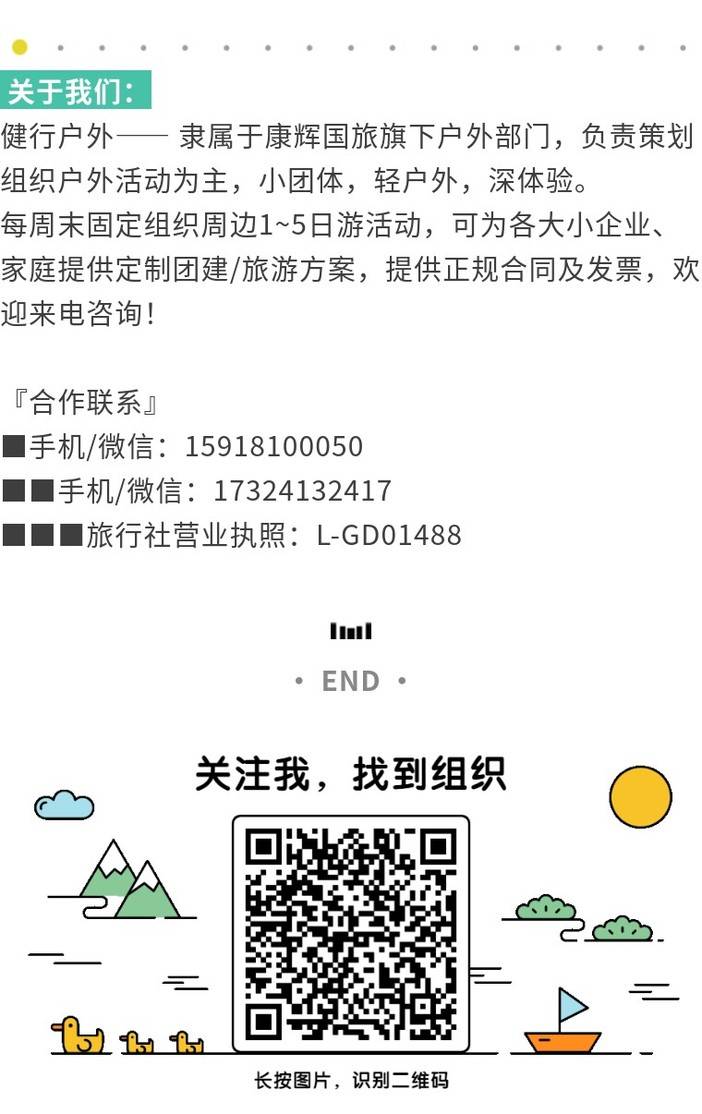 14、为了记录您在旅途中的美好瞬间,服务人员可能会为您以及同行人员拍摄一些照片,这些照片可能会被选中用于本产品活动分享、产品宣传、新媒体运营等,若您不同意授权我司使用的,请您在报名时备注。