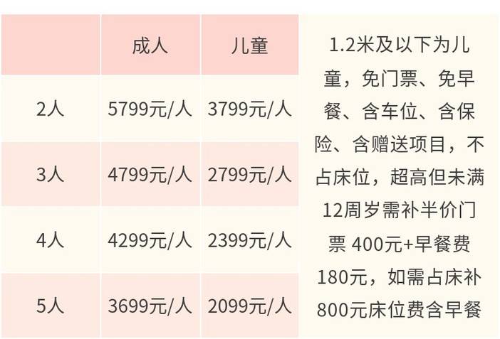 成人3999元/人,儿童2399元/人