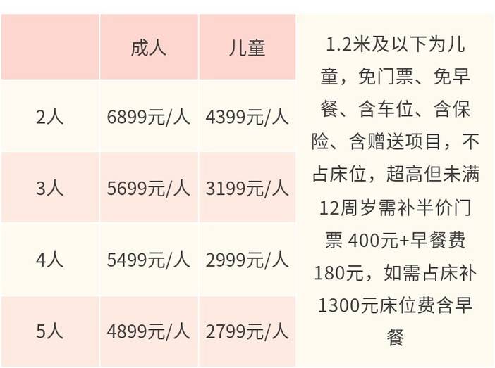 成人4899元/人,儿童2799元/人