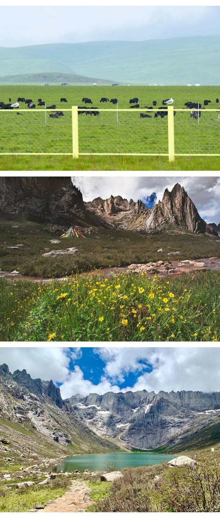 15 : 00适时抵达【莲宝叶则】,这里是藏区著名的神山,挺拨的千刃石峰是其雄伟的风骨,晶莹闪亮的湖泊是她宝石般多情的眼睛。世上的行者分两种,一种是来过莲宝叶则的,另一种是正在赶来途中的。与年保玉则同属巴颜喀拉山,一个在青一个在川。我们来到这片秘境中的秘境,朝拜这安多地区神山之首。