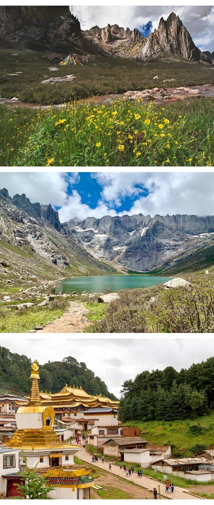 09 : 00适时抵达【莲宝叶则】,这里是藏区著名的神山,挺拨的千刃石峰是其雄伟的风骨,晶莹闪亮的湖泊是她宝石般多情的眼睛。世上的行者分两种,一种是来过莲宝叶则的,另一种是正在赶来途中的。与年保玉则同属巴颜喀拉山,一个在青一个在川。我们来到这片秘境中的秘境,朝拜这安多地区神山之首。