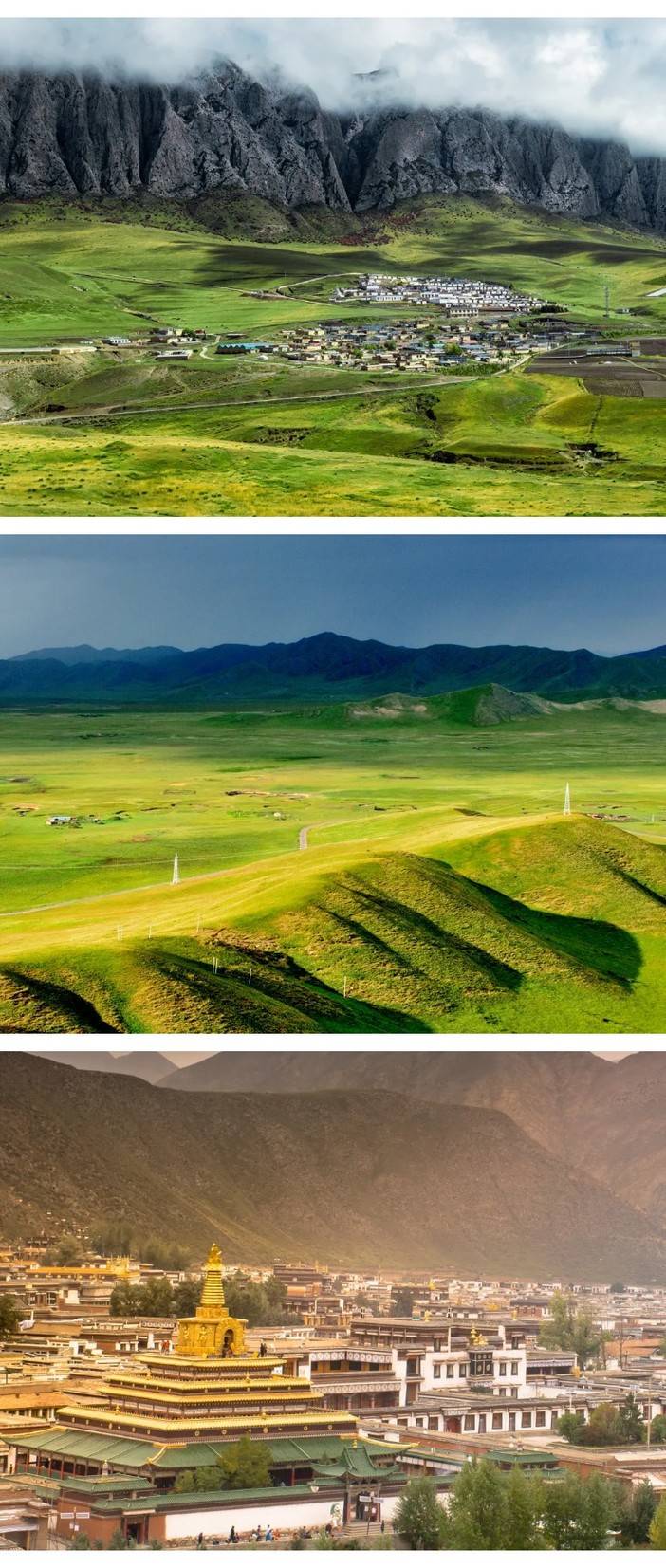 15 : 30适时路过娘玛寺,下车参观【世界第一大转经筒】,娘玛寺的转经筒,如一座金色山峰矗立于阿万仓草原。42米高的筒身用60公斤黄金贴就,尼泊尔工匠手工锻造的佛像与经文在阳光下熠熠生辉。它是世界最大的转经筒,每一圈转动,都承载着11万册经文的加持与祈福,我们也可以上前转经祈福。18 : 00适时前往【格尔底寺】,位于四川和甘肃交接的郎木寺镇,是中外驰名的背包客圣地;这里也是之前进藏的必经之地,白龙江将小镇一分为二,甘肃寺的金顶与四川寺的佛殿隔江相望,我们前往的是四川寺进行参观哦~