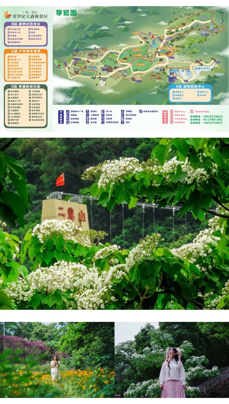每年4月中旬至5月初,二龙山千余株油桐树盛放,满树洁白、风过落英,地上铺成花毯,是珠三角难得一见的春日“雪景”。步道穿林而过,抬头是繁花,脚下是花瓣,随手一拍都是森系大片,亲子同框温柔又出片。