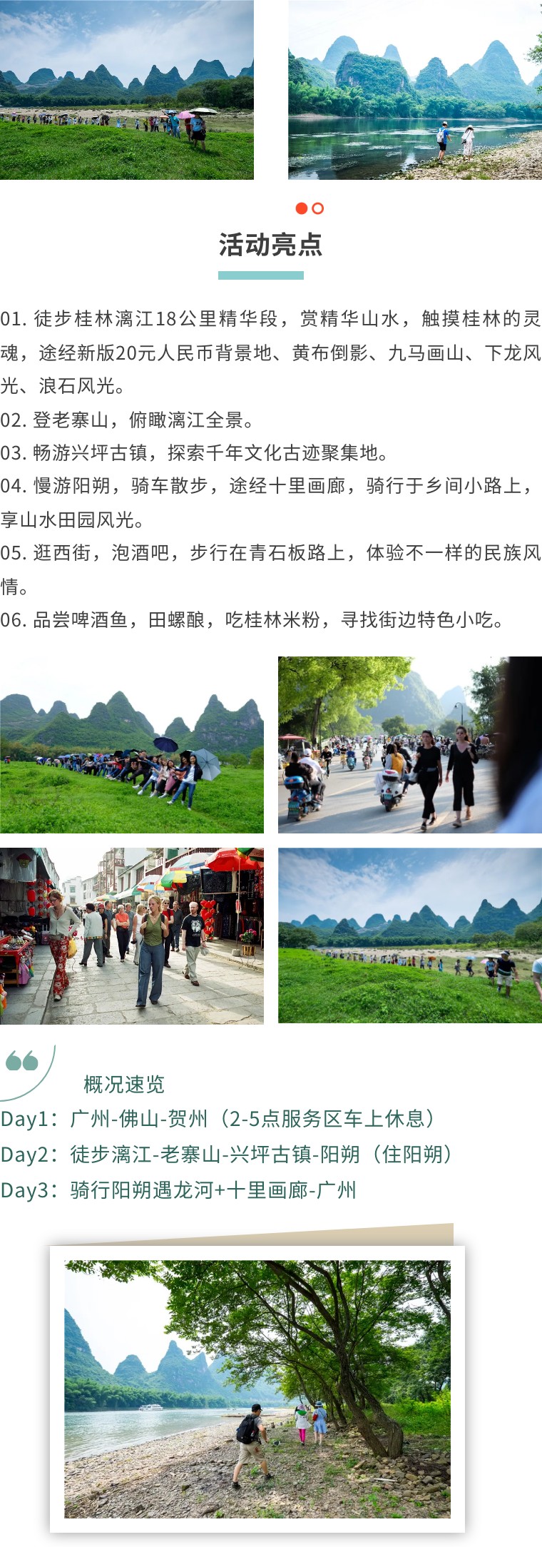 2. 一晚阳朔住宿(单人报名默认安排同性拼房)。