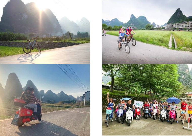 08:00 酒店大厅集合,统一到附近租车店挑选适合自己的单车(费用已含)或者电动车(需现补差价),由领队带着,开启【漫游阳朔】,全程环线骑行大约20KM,直线往返骑行大概12公里,途经遇龙河公园、夏棠码头、旧县村、十里画廊,尽览阳朔田园风光,不会骑车的队友可找团友搭一下。