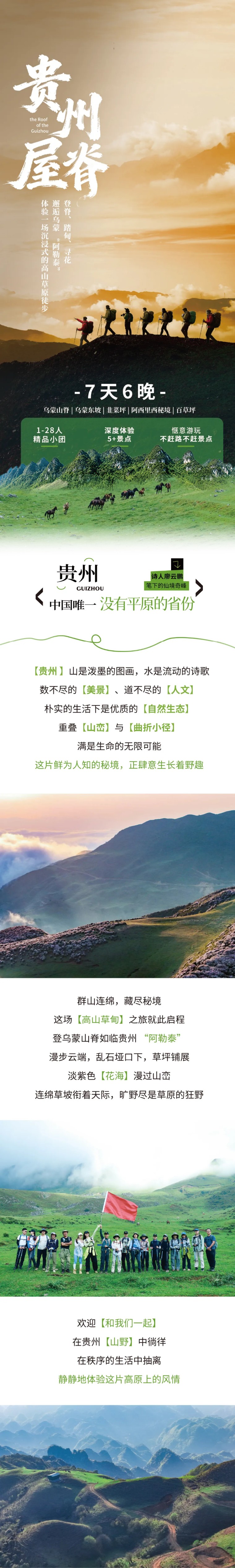 一路沿山梁草甸前行,视野开阔,绿意铺展;途经峰林峡谷,感受大自然的雄奇与幽深。