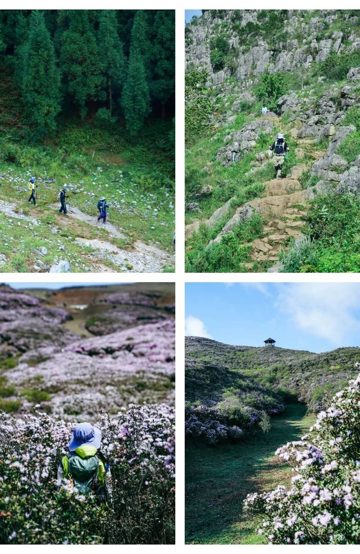 ② 当日徒步路程约16-18公里(穿越路线),累计爬升约为800米(下降约1300米),以草甸石林丛林风光为主(4月中旬到5月上旬有漫山遍野的野生杜鹃花海景观),机耕道+山路段为主,有部分硬化乡道。