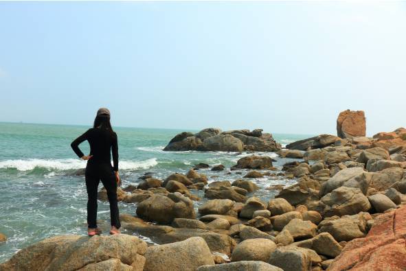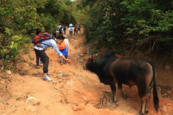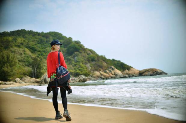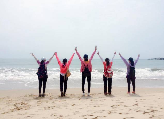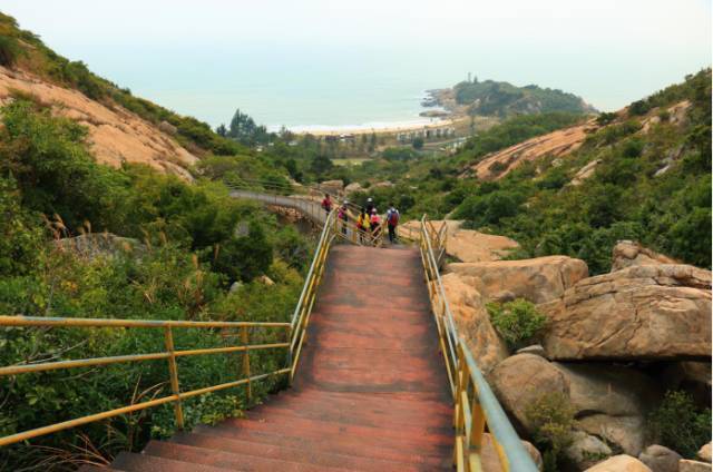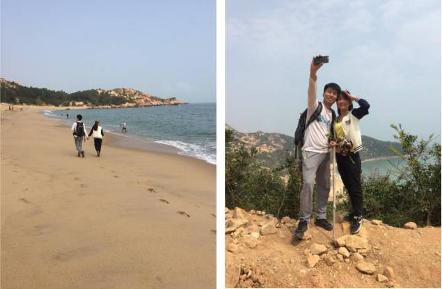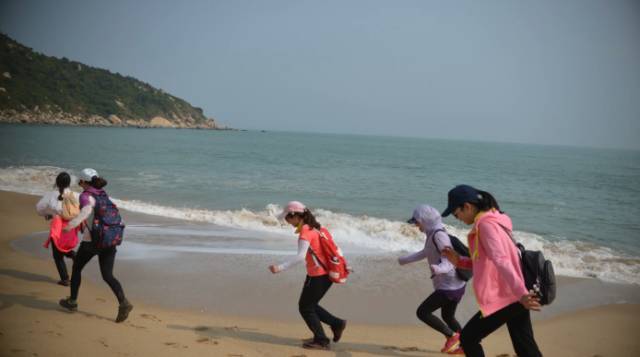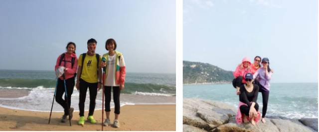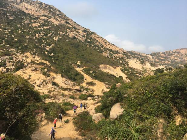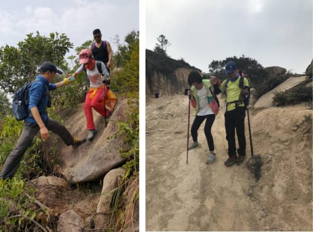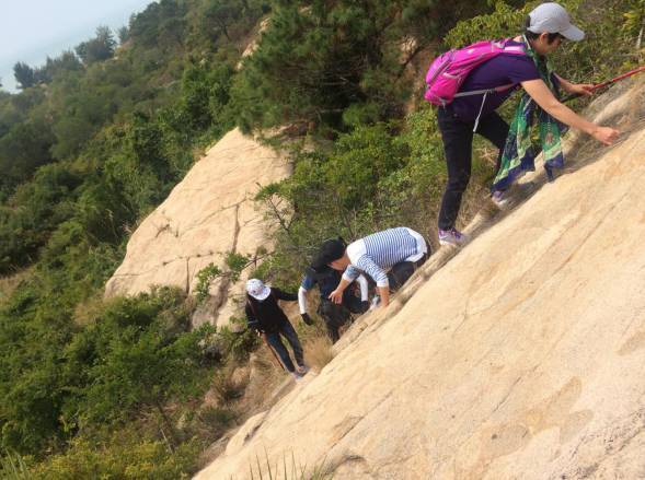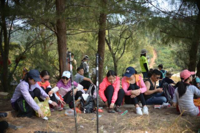 4、稍作休息,向最浪漫的沙滩出发。毫无疑问,追求美好是要付出,翻过两座坡度较大的山,沿途碎沙路较多。可是天塌下来都有小伙伴的撑着,你一拉、我一扶,战友情就是这样建立起来了。
