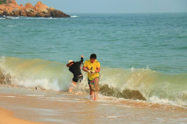 6、终于到了如梦如诗般的海滩-------海天一色,浪翻云。