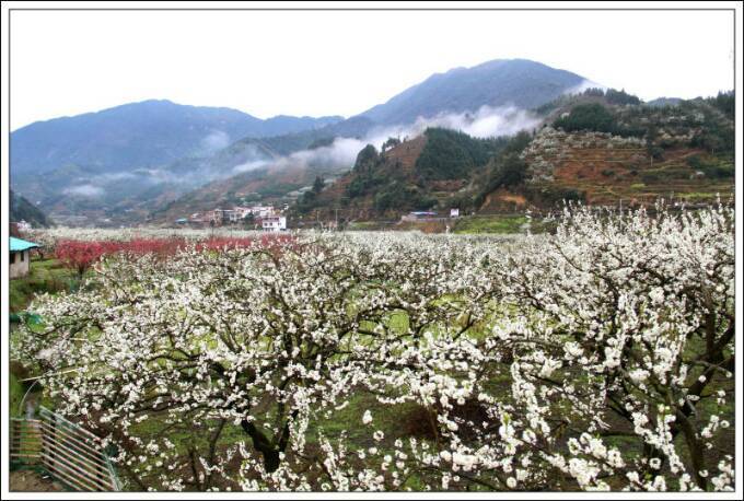 乐昌九峰山有着梦境般的田园,被成为中国最美的乡村之一。九峰山山清水秀,人杰地灵,境内群峰叠障。九峰山利用得天独厚的自然条件,大力发展水果生产,目前已种植奈李、水密桃、水晶梨等5万亩。每年春季,桃花,李花,梨花还有油菜花争相开放,红的,白的,黄的,绿的,色彩绚丽,再夹杂着散落其间的灰色瓦房,好一幅田园画卷。