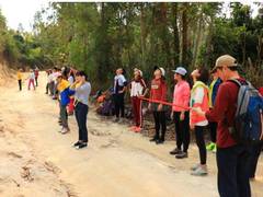 5月22日,天气,阴天转晴,有凉爽的风。是一个进行户外活动的好天气在这好天气,健行户外一行48人降临清远南峡真的整个山头都是我们的人,当天除了我们团队,并没有其他队伍。南峡徒步全长约9km,是北江三峡中最雄伟、最险峻的,峡有三十六峰,峰峰有名,千姿百态,沿山脊穿越,跨过一峰又一峰。——队友:章仔国际惯例,先来一张大合照热身,也是国际惯例清远南峡,环境保护得相当好,可能是因为是新线的缘故,路上垃圾很少很少,希望后面去的驴友们做好环保,自己产生的垃圾自己带走,继续保留这片原生态的徒步环境,让我们以后的子孙后代同样可以感受到真正的没有垃圾的大自然穿越全路段无补给,无水源,有山脊路段,如遇晴天,需带足水行进过程的瞬间留影,总是最能打动徒者的内心这次活动中有几个小孩子,最小的6岁小孩子的世界是我们成人无法理解的,这个我们必须承认小孩子的体力更是我们成人无法估计的,这个已经经过多次验证小孩子在户外徒步