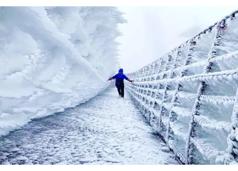 以奇特的云海和冰挂景观不断在朋友圈刷屏、圈粉
