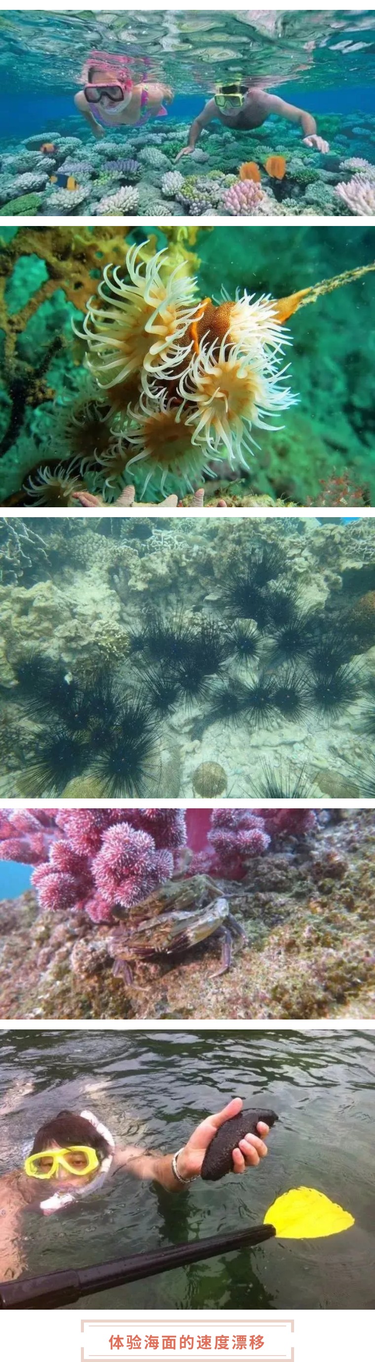 配备专业领队教大家浮潜,抓海胆,现场杀新鲜海胆供大家品尝!