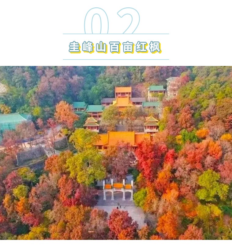 10:00 左右到达【圭峰山】,拾级而上至玉台寺(不想走路的小伙伴,可以自费搭乘景区观光车)。打卡千年古寺玉台寺,靠近玉台寺的两旁都是巨大的枫树,每到秋冬之际,这里浪漫布满半山~有兴趣可以继续登顶至天鹅湖。适时下山,午餐在山脚周边的餐厅自由解决