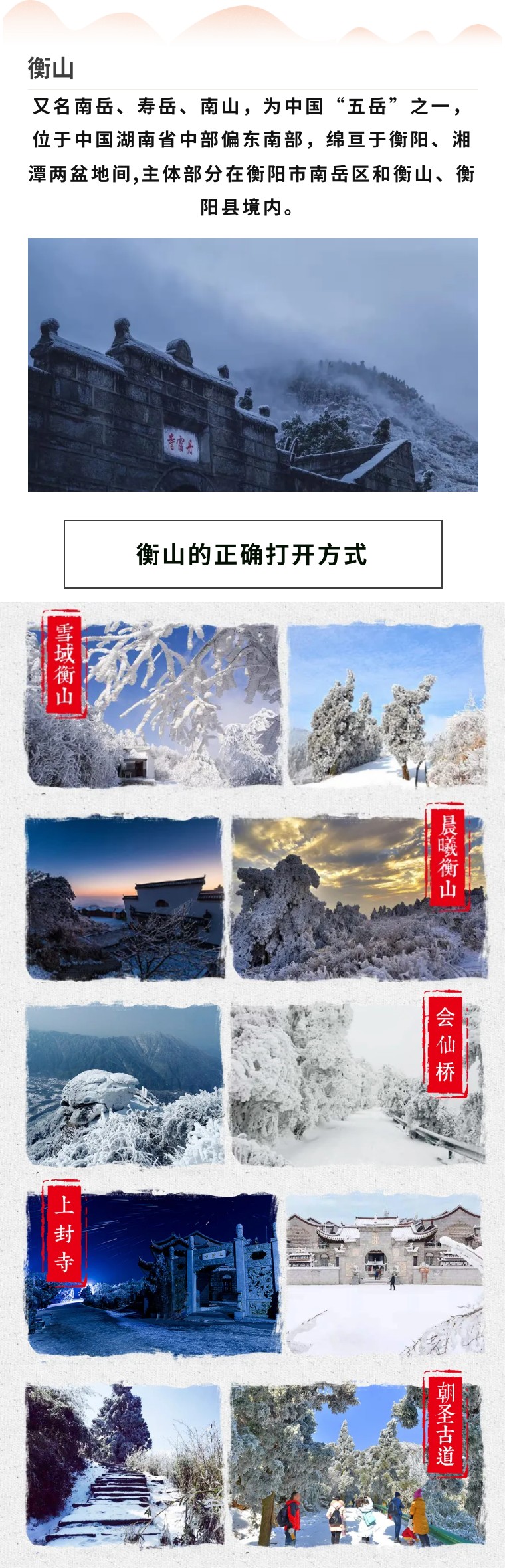 到达衡山山脚(衡阳东约晚1个小时),附近自行解决午餐,午餐后领队带领大家做热身运动,然后开始我们的“朝圣之旅”。(徒步轻装即可,客栈会将大家行李运送到住宿的客栈,如遇道路结冰车辆无法行驶时,无此项服务,会提前通知)