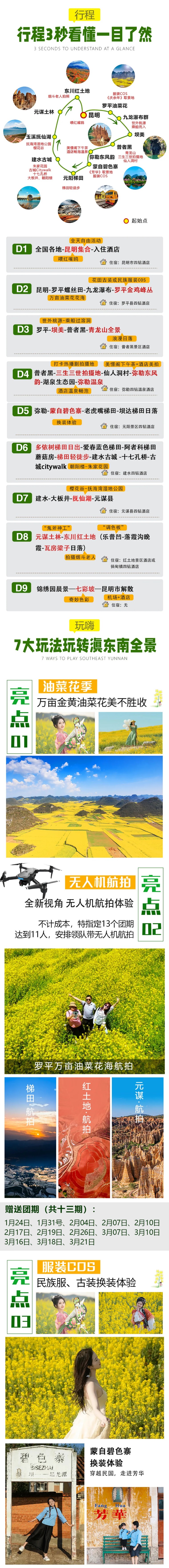 【活动团期】(1月下旬—3月中旬最美油菜花季20期,每期成行)(指定第01、02、03、04、05、06、07、10、14、15、17、18、19共13期满11人赠送航拍 )