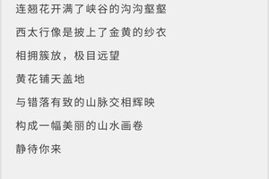早餐后前往徒步起点,【梯脑山】是一座山,也是一个山村的村名,我们将从桥上村开始徒步后经桃花喽古道登上梯脑山,一路上连翘花相伴,阵阵微风吹过,满是花香。徒步结束后返回峡谷镇酒店住宿。