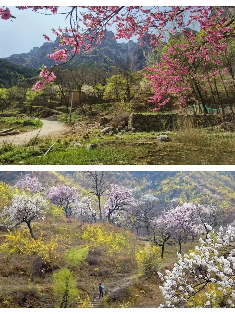 除了连翘花,徒步路上还有机会见到桃花和一些不知名的白色花朵。