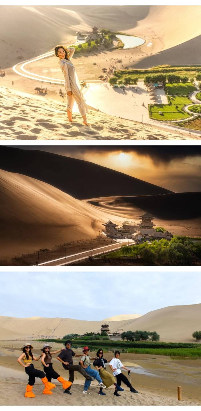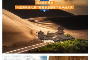 早餐过后,我们驱车翻越当金山前往敦煌,领队将带领大家去免费品尝有着“中华一绝”美誉的敦煌特色小吃:驴肉黄面。当鲜美滑嫩的驴肉卤汁遇见多筋弹性十足的黄面,补血益气,满口溢香。餐后,驱车前往不一样的西北盛景【鸣沙山月牙泉】。鸣沙山和月牙泉是大漠戈壁中的一对孪生姐妹,“山以灵而故鸣,水以神而益秀”。无论从山顶鸟瞰,还是泉边畅游,都会心驰神往。沙漠中您可以自由选择骑骆驼、沙漠越野、或者直接步行上沙山。抢占一个绝佳的位置,静候夕阳西下。落日斜晖为细沙镀上了一层薄薄的金色,随手拍下一张剪影,温柔了整个大漠。