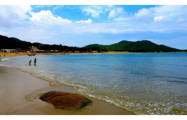 南澳岛上景点众多,美丽的海湾也随处可见。在众多海湾美景中,最为著名的是青澳湾。海湾似新月,海面如平湖,金黄柔软的沙滩绵延2400多米,坡度平缓,沙质细滑,海水清净无污染,海的景观多了几分柔美,少了几分粗犷。