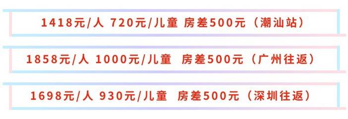【深圳小伙伴】,自行到深圳北站(G924、G1602,D2282,D7308、D662,C7204,G1022、D2388)乘车,到达潮汕站后跟领队汇合,具体时间(9:18-10:09分左右)以票务出票为准,到时会提前发通知,注意查看。