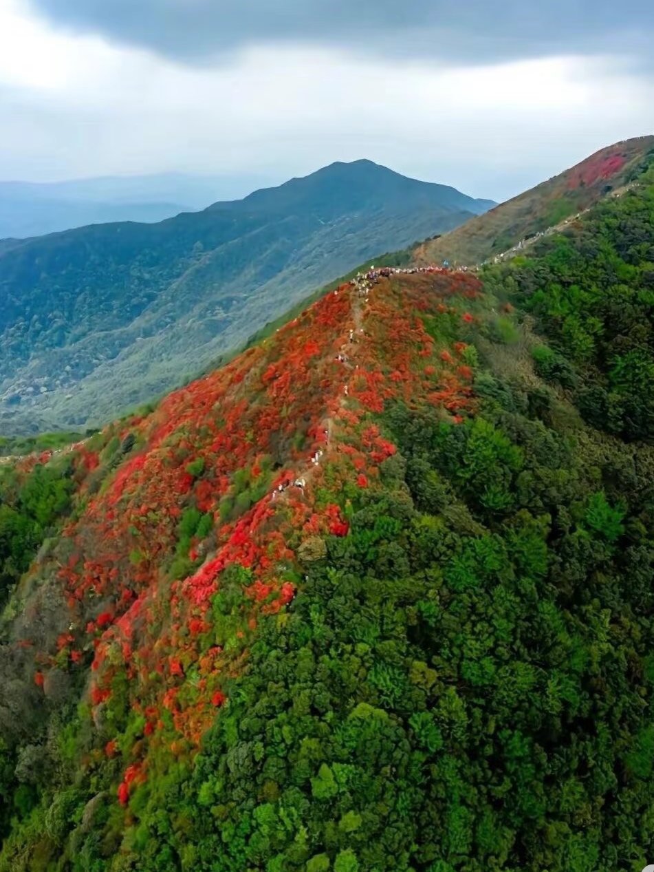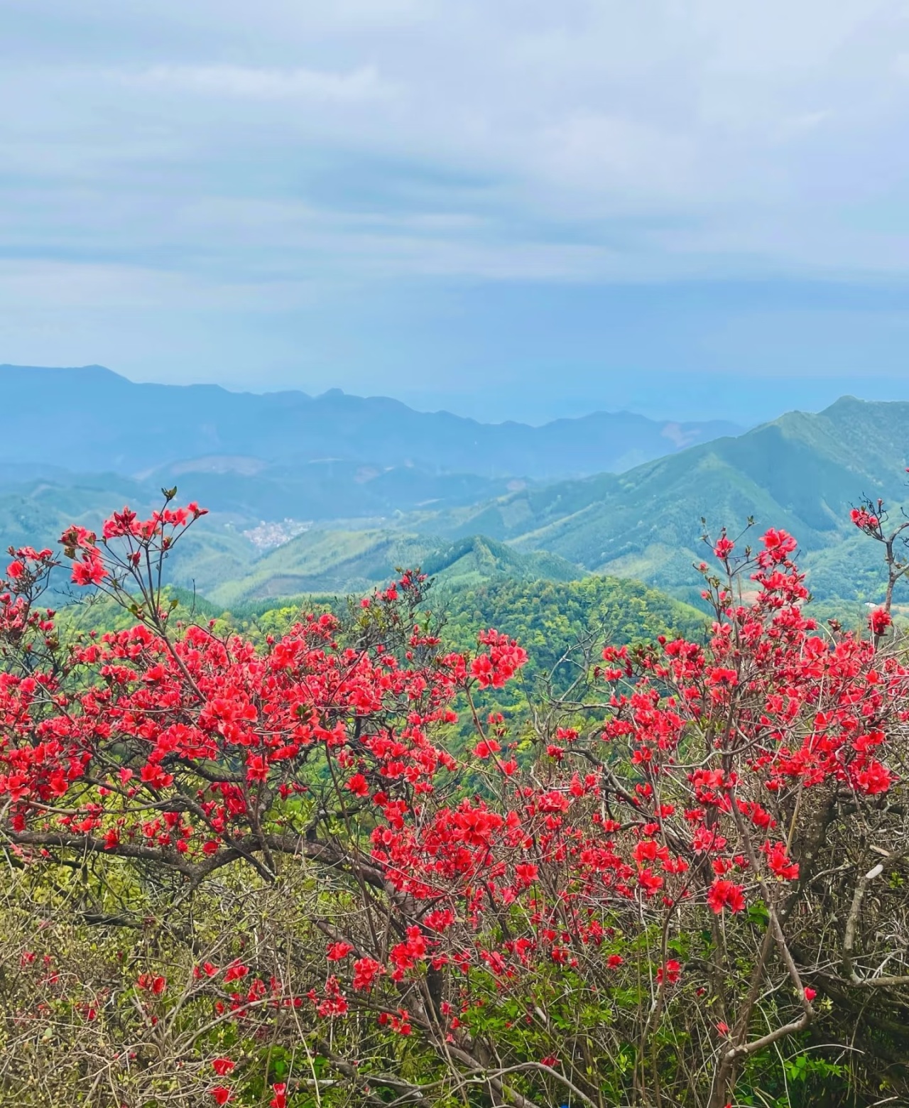 每年3-4月春暖花开的季节,海拔900米以上满山遍野都是红灿灿的杜鹃花,远远看去就像红烛辉映天空,故当地人称之为通天蜡烛。