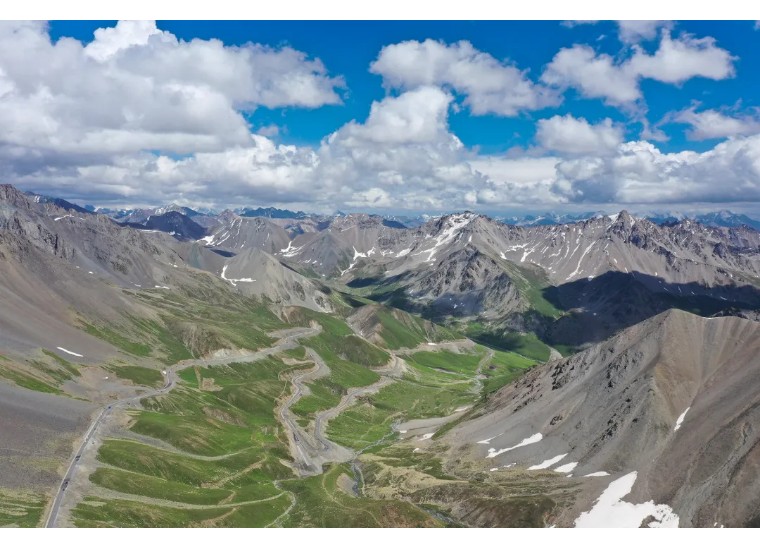 今天早餐后,我们出发独库公路,都说独库公路“一日穿越四季”,行至哈希勒根隧道时这种感受尤为强烈。从出发时独山子盛夏的骄阳,到这里山顶白雪皑皑的寒冬,能让你强烈地感受到“一天有四季,十里不同天”。哈希勒根隧道附近,这里是独库公路雪最大的地方,游览拍摄。穿过哈希勒根达坂的防雪长廊,继续前行,就到了乔尔玛。从乔尔玛前往唐布拉的仙女湖。