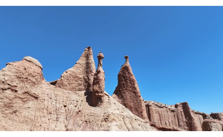 我们乘坐景区车深入峡谷内,迂迴曲折,到处是红崖赤壁和千姿百态的石峰石柱,远远望去犹如荒城古堡,尽现苍凉美,如置身精美雄浑的自然画廊。