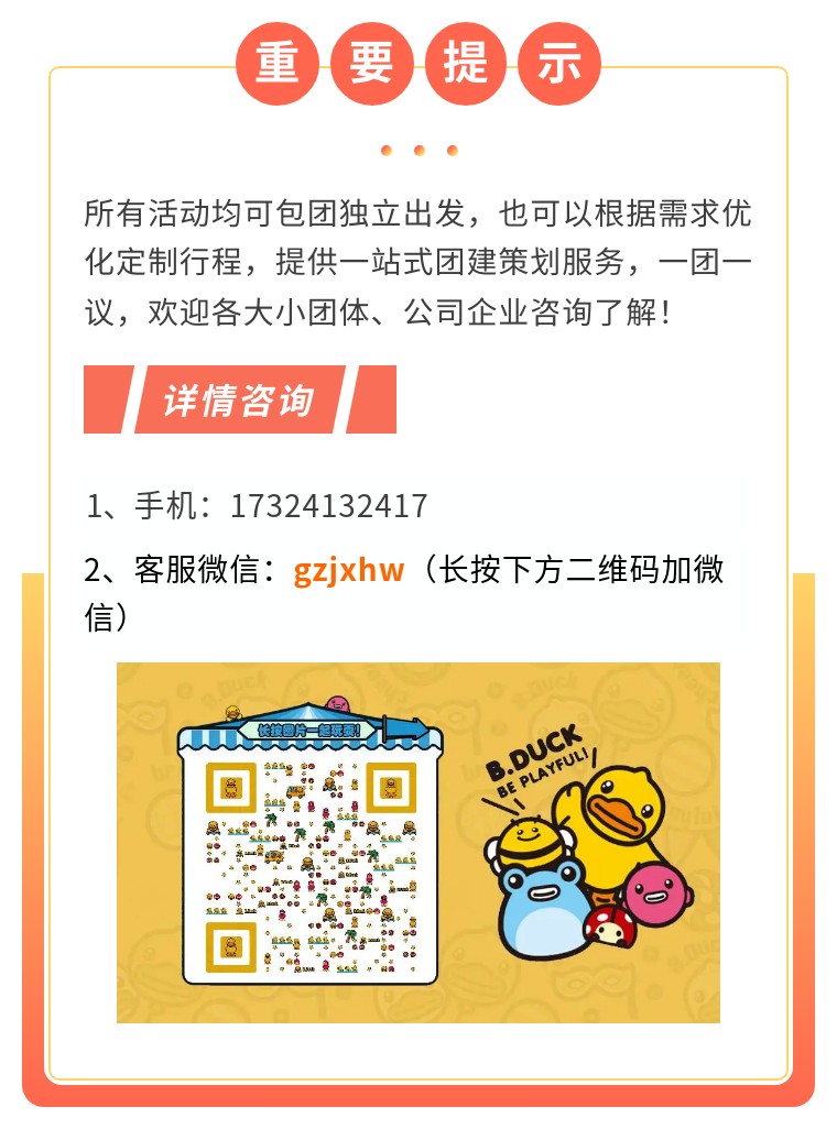2、一大一小报名,请将儿童按成人占床价报名,门票和高铁半票费用现退。