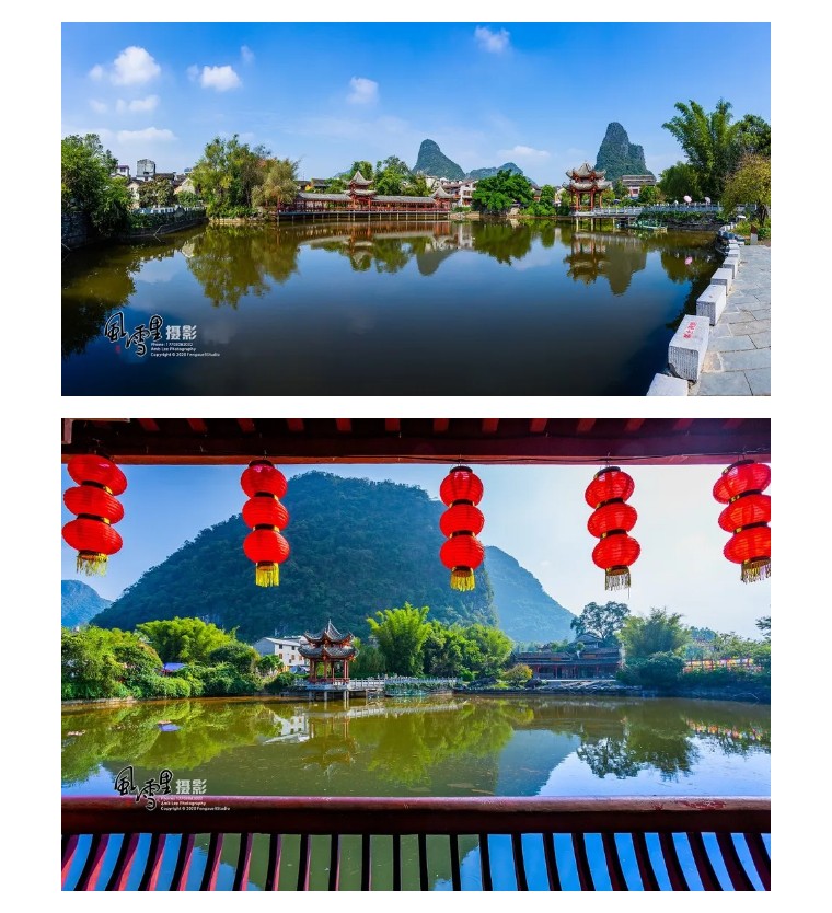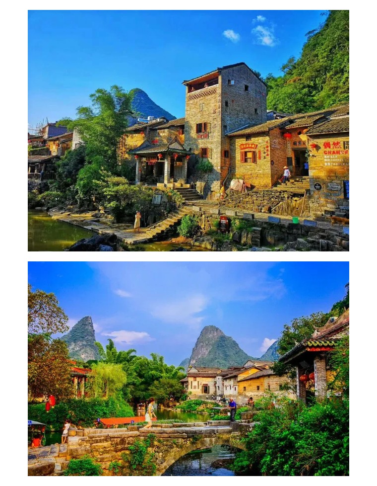 前往东潭岭俯瞰黄姚,看黄姚全景,古镇、石山、湖泊,随手拍山水画,天气好也可以看到日落;