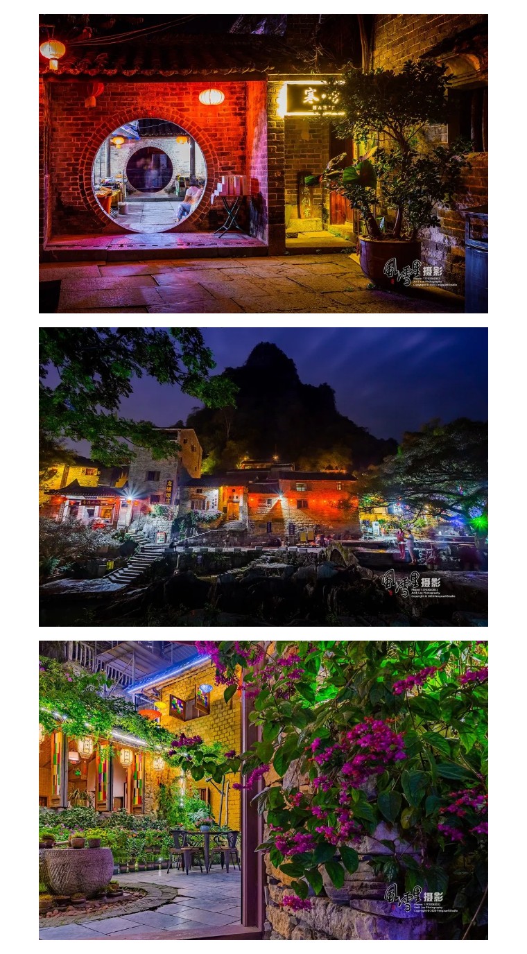 晚餐后,欣赏夜晚在一对对灯笼下的古镇又是另一番味道。镇上没有路灯,家家户户都会把门前的红灯笼点亮,坐在门外,映着皎洁的月光,话家常,闲散而惬意,这绝对是黄姚最独特的景色,适合拍照和溜达。大家可以在酒吧聊天, 更晚,入睡前的黄姚星空,可以一起找一个空旷的地方看星空,美梦在心,美景在前。